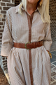 The Sofia Belt in dark cognac features a playful crescent moon buckle that adds a touch of whimsy to any outfit. Perfect for brightening your look with a fun and stylish twist!