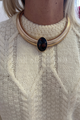 The Lucinda necklace combines timeless elegance with practical durability. This statement piece features a flexible oval stone set within a refined omega chain design, creating a striking focal point that complements both casual and formal wardrobes. The water-resistant construction ensures your investment withstands daily wear while maintaining its sophisticated appeal.