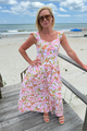 The Antonella dress features an elegant floral print with sophisticated ruffle detailing throughout its midi-length silhouette. Expertly crafted with precision tailoring, this versatile piece transitions seamlessly from daytime engagements to evening affairs. The strategic placement of ruffles creates a flattering, feminine profile while the midi length offers both comfort and contemporary style.