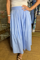 Introduce some bold and chic style to your wardrobe with our blue stripe pattern high waist pleated midi skirt. The elasticated waistband and side zipper closure ensure a comfortable and secure fit, while the pockets at the sides add convenience. Perfect for any occasion, this skirt is lined for added comfort.