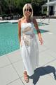 Look stunning in the Barlette dress. This gorgeous off white dress features a sleeveless design and side cutouts for a sexy yet elegant look. Made with high-quality materials, this long dress is perfect for any special occasion.