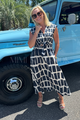 Expertly crafted from 100% cotton, the Cape May dress boasts a stunning abstract print and a classic sleeveless design. The collar button front with knot closure adds a touch of sophistication, while the smocked back waistband provides a flattering fit. Plus, with convenient pockets at the side and a soft lining, this midi dress is both stylish and functional.