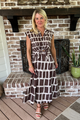 Expertly crafted from 100% cotton, the Cape May dress boasts a stunning abstract print and a classic sleeveless design. The collar button front with knot closure adds a touch of sophistication, while the smocked back waistband provides a flattering fit. Plus, with convenient pockets at the side and a soft lining, this midi dress is both stylish and functional.