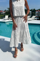 The Darren skirt is crafted from breathable eyelet cotton, featuring a tiered midi silhouette that combines classic elegance with modern comfort. Its lightweight fabric and structured tiers create a flattering shape, perfect for warm weather or layered styling. Ideal for those seeking a refined yet effortless addition to their wardrobe.