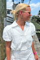 The Elina top is a cropped poplin shirt with bubbled sleeves and contrast topstitching. This versatile piece adds a playful touch to any outfit, while its high-quality cotton material ensures comfort and durability.