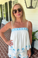 The Elinda top features delicate seashell embroidery and scalloped edges. This elegant top is perfect for adding a touch of beachy charm to any outfit. Crafted from high-quality materials, it provides a comfortable and stylish fit.