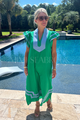 The Gabriella dress showcases a sophisticated high neck band collar with distinctive contrast accents, drawing inspiration from traditional caftan designs. This architectural neckline creates an elegant silhouette while providing a contemporary interpretation of classic elements. The refined contrast detailing elevates this versatile piece for both formal occasions and elevated everyday wear.