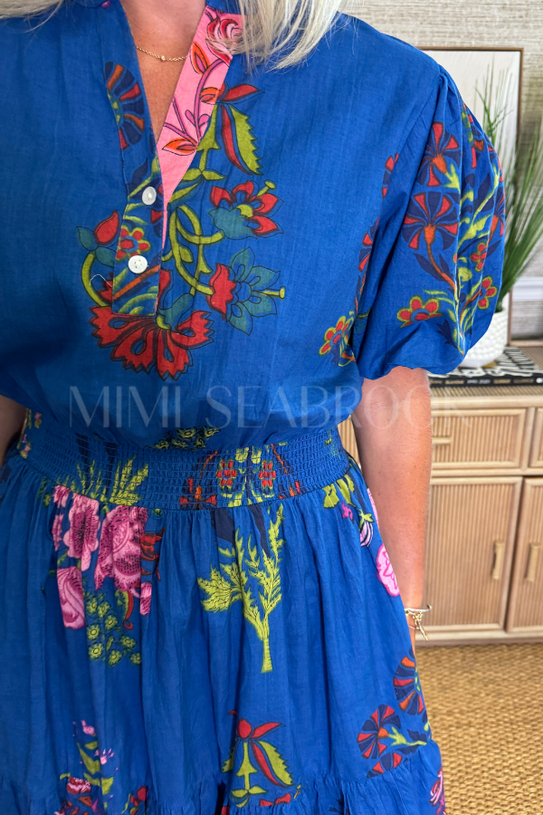 The Gardner dress in blue is a versatile addition to any wardrobe. The puff sleeves and floral print add a touch of femininity, while the lightweight fabric ensures comfort.