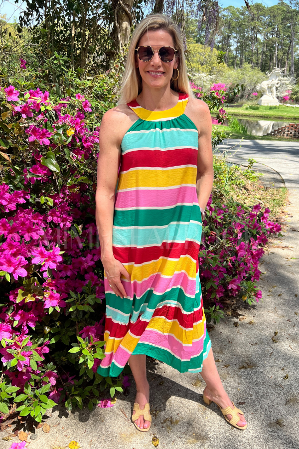 This Georgette dress features a colorful print, adding an eye-catching touch to any outfit.