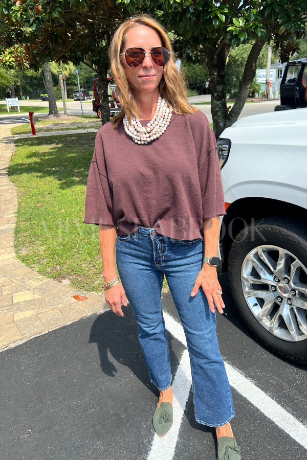 Cozy meets chic in this Hadleigh top, featuring a solid sweater knit and playful ¾ wide sleeves that add a fun twist to your everyday look. Perfect for layering or wearing solo, its rich brown hue brings warmth and style to any outfit. Embrace comfort with a dash of flair!