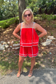 The Kati romper is a must-have addition to your summer wardrobe. With its solid color design and stylish shoulder tie, it's the perfect combination of comfort and fashion. The pull-on style makes it easy to wear, while the contrasting accented trim inset adds a touch of sophistication. Stay on trend while staying comfortable with this chic romper.