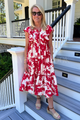 The Ledger dress showcases a stunning botanical print, complete with flutter sleeves and a ruffle hem for a feminine touch. The adjustable side waist tie allows for a flattering fit, while the accent binding finish adds a sophisticated touch. Lined for ultimate comfort. Elevate your wardrobe with this midi dress.