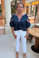 The Marlene top features a flattering v neck and trendy puff sleeves, making it a must-have for any wardrobe. Elevate your style with this versatile top, perfect for both casual and formal occasions. Expertly designed for maximum comfort and on-trend style.