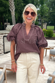 The Metcalf top features a sophisticated puff sleeve design paired with a flattering V-neckline, offering a refined silhouette that balances volume and structure. Ideal for those seeking a blend of classic style and contemporary flair.