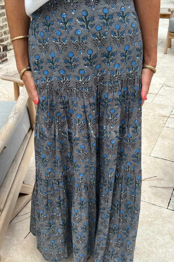 Elevate your style with our Murphy skirt in grey and blue. This classy piece adds a touch of elegance to any outfit. Enhance your wardrobe with this versatile and timeless skirt, perfect for any occasion.