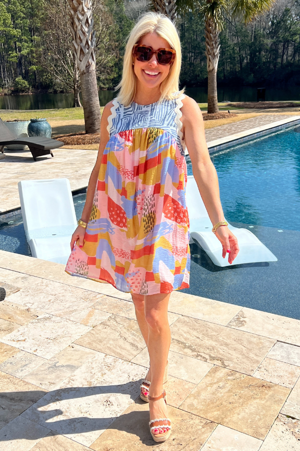 Expertly designed for versatility and style, our Nettie dress features a lightweight sleeveless design and a vibrant multi print pattern. Perfect for any occasion, this dress will keep you chic and comfortable all day long. Elevate your wardrobe with this must-have piece.
