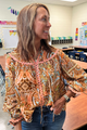 The Pickens top is a long sleeve printed blouse distinguished by its decorative trim detail. Expertly crafted, it offers a refined look suitable for both office and casual occasions. The elegant trim enhances the blouse’s design, providing subtle sophistication while maintaining comfort and style throughout the day.