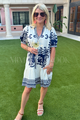The Rogen dress features a woven, printed button down front and a charming ruffle hem. This dress exudes sophistication and whimsy, perfect for any occasion.
