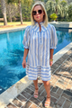 Elevate your style with the Tahaloma dress in blue. Featuring a high ruffled neck and round yoke piping, this mini dress adds a touch of sophistication to any occasion. The unique design and lack of lining create a lightweight and breathable feel, perfect for summer days or nights out.