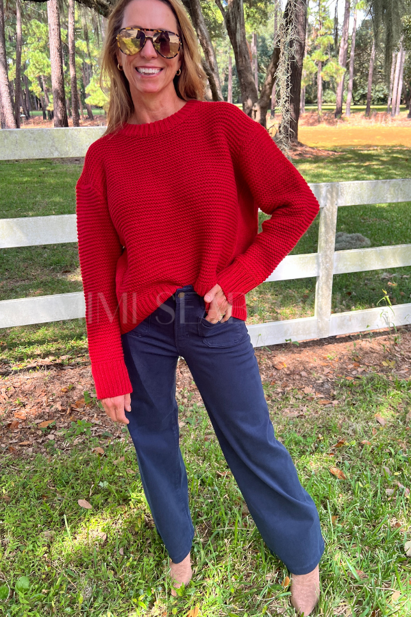 Reina high rise wide leg denim jeans, dark red