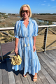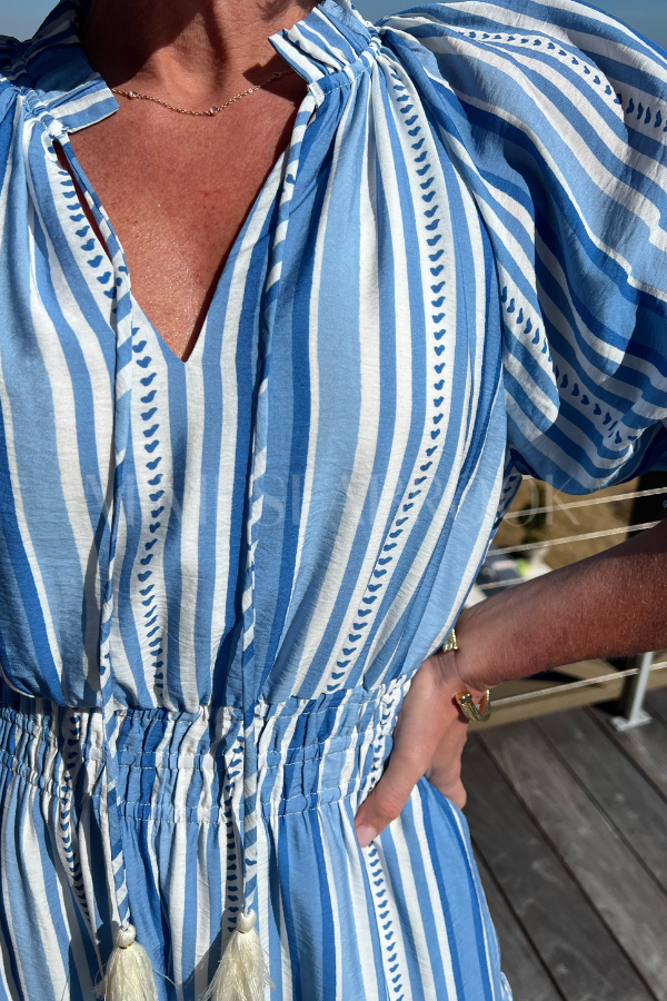 The Adina dress brings effortless charm with its playful puff sleeves and timeless striped pattern. This midi-length beauty strikes the perfect balance between casual and polished, making it ideal for everything from weekend brunch to evening outings. The voluminous sleeves add a touch of whimsy while the classic stripes keep things chic and versatile.