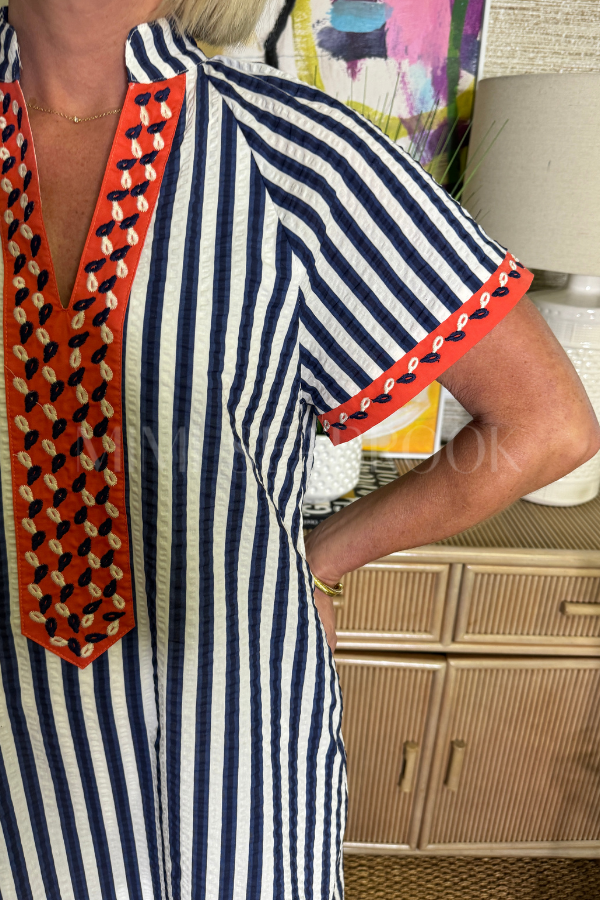 The Heidi dress combines timeless elegance with contemporary style. This short-sleeve v-neck design features refined striped detailing that adds visual interest and dimension. The flattering silhouette works beautifully for both professional settings and elevated casual occasions. Crafted for comfort and versatility, it's a wardrobe essential that transitions effortlessly from day to evening.