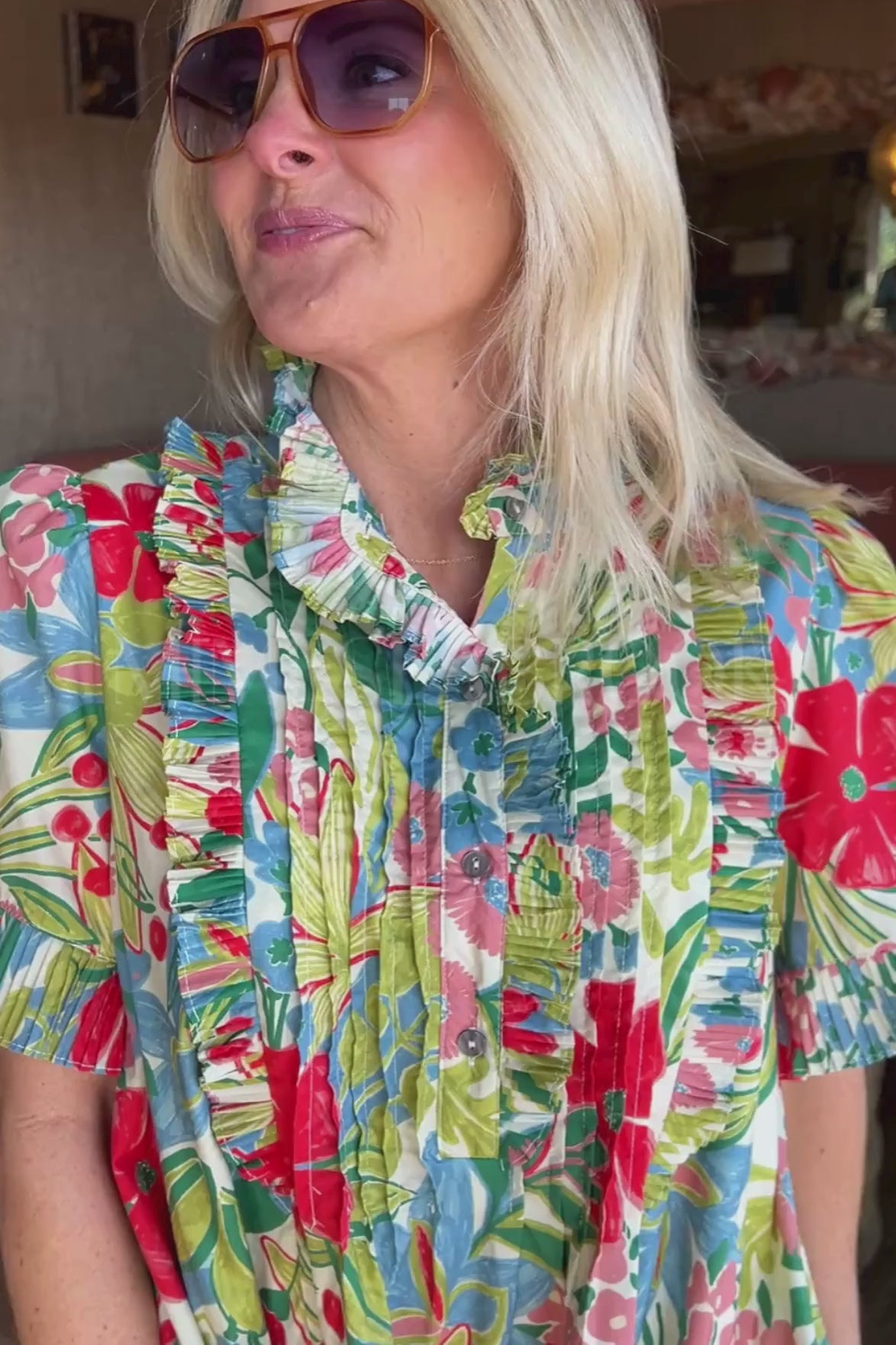 The Kolter dress is your ticket to effortless charm. This floral mini features whimsical pleated ruffles at the neckline and cuffs that add instant personality, paired with refined pintuck detailing along the front and back. Button down the front for easy dressing, and discover practical side pockets hidden in the seams. Crafted from lightweight woven fabric that's fully lined and beautifully non-sheer, it's the kind of dress that feels as good as it looks.
