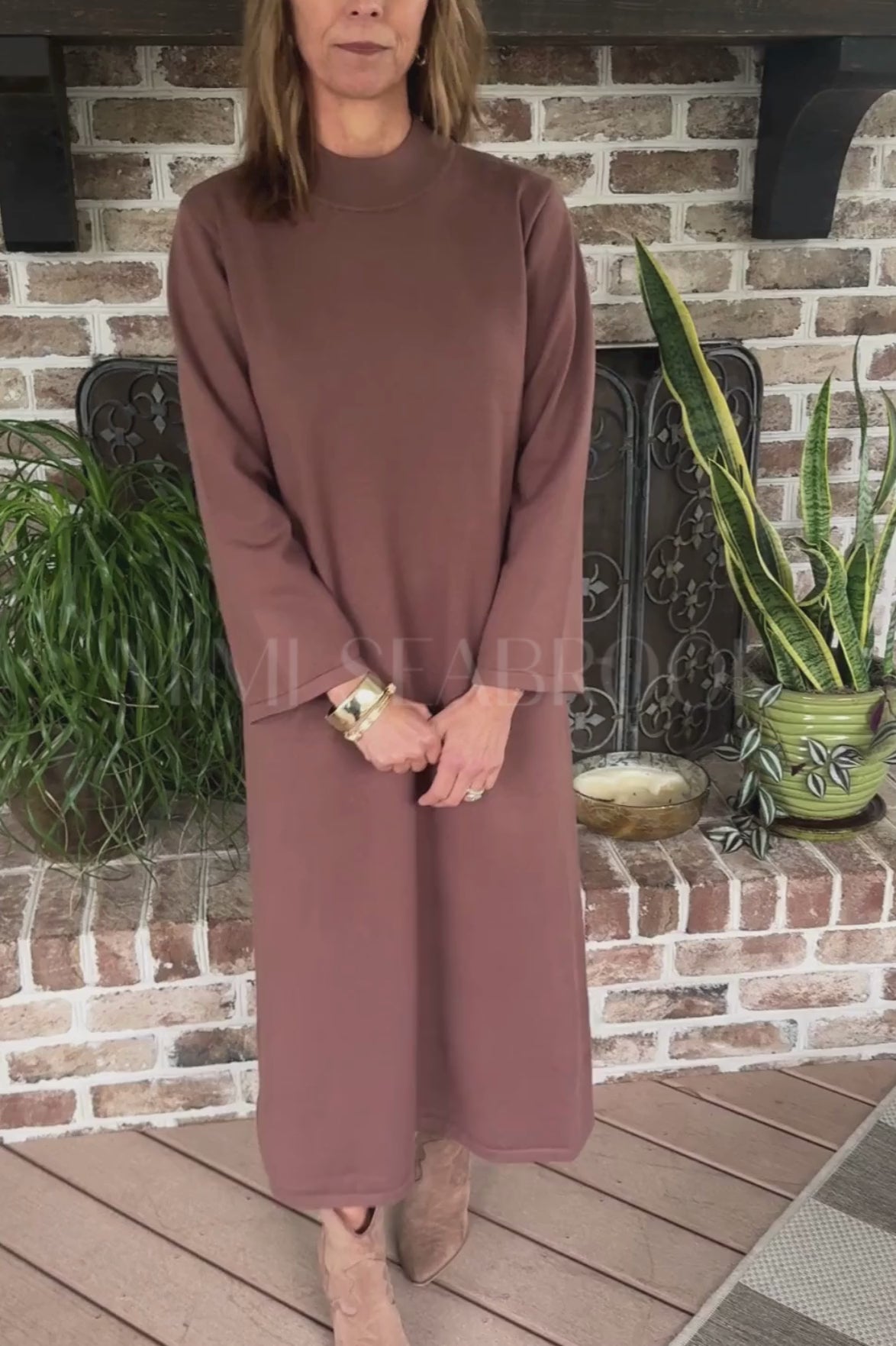 The Murray Dress in coffee is your new go-to for effortless style. This playful midi dress features a cozy mock neck and long sleeves, crafted from a medium-weight knit that’s soft and smooth but not sheer. With a blend of viscose, polyester, and nylon, it offers just the right stretch and shape to keep you comfy while turning heads wherever you go. Perfect for layering or wearing on its own, this unlined piece makes everyday dressing a breeze.