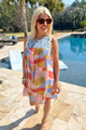 Expertly designed for versatility and style, our Nettie dress features a lightweight sleeveless design and a vibrant multi print pattern. Perfect for any occasion, this dress will keep you chic and comfortable all day long. Elevate your wardrobe with this must-have piece.