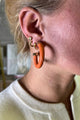 Add a pop of fun to your look with the Amelia Earrings! These playful hoops combine vibrant orange wrapped leather with sleek metal accents, creating a bold accessory that’s perfect for brightening any outfit. Lightweight and eye-catching, they’re ready to bring a splash of color and charm wherever you go.