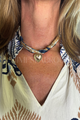 The Aruba Scarf Necklace artfully combines deep navy and gleaming gold tones for a sophisticated accessory that enhances any outfit. Featuring a delicate heart charm, this piece merges the fluidity of a scarf with the elegance of a necklace, offering a refined yet expressive statement. Expertly designed, it provides a versatile and timeless addition to your jewelry collection.