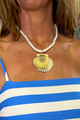 Upgrade your beach look with our Shore necklace. This stunning necklace features a beautiful shell-shaped pendant on a chic cord, making it the perfect accessory for a day by the sea. Elevate your style with this unique and stylish necklace.