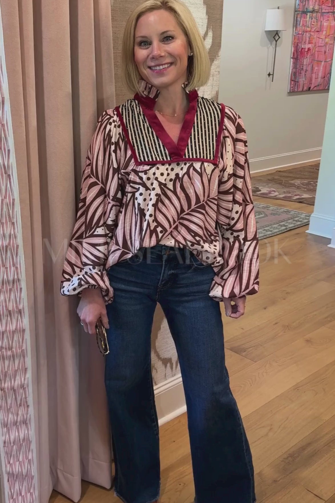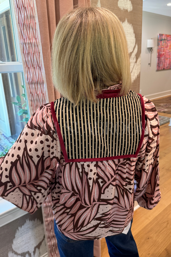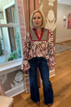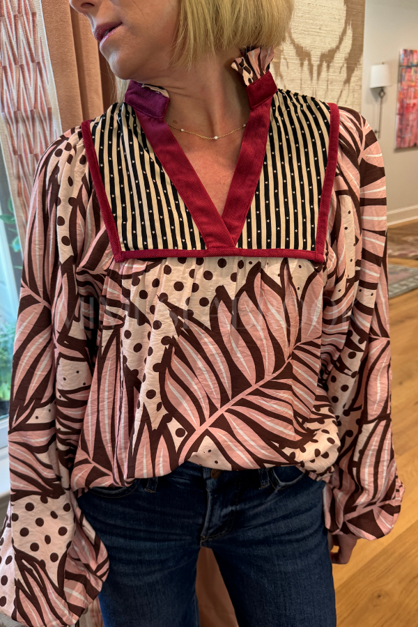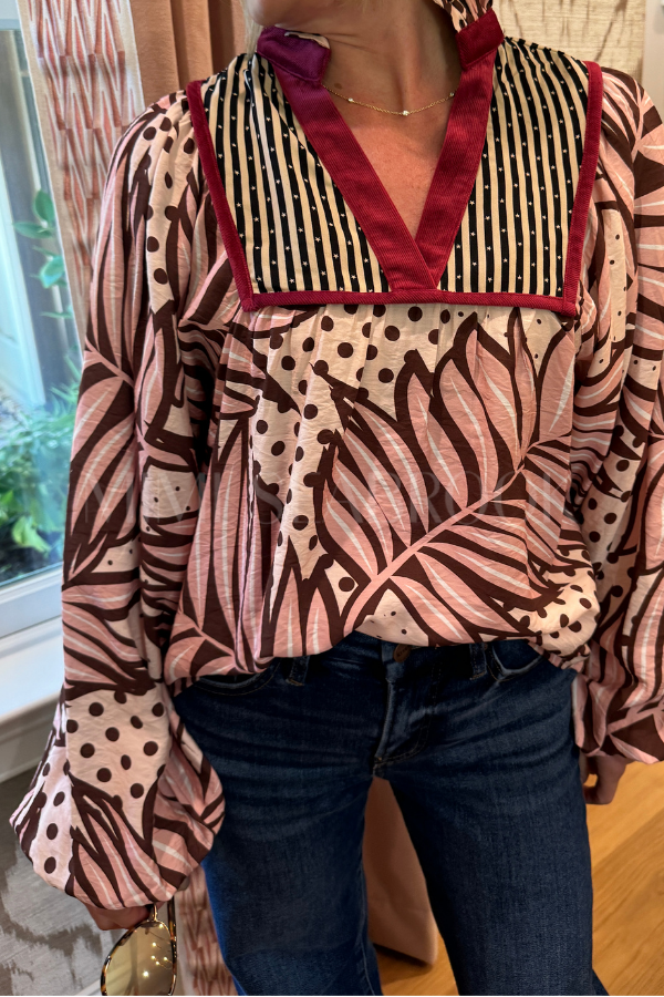 The Appleton top features elegant long sleeves and refined print details, offering a sophisticated touch to your everyday wardrobe. Its graceful design effortlessly enhances any ensemble, making it ideal for both professional settings and stylish outings.
