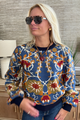 The Arnold sweater brings a playful twist to your wardrobe with its charming floral and animal print. Featuring a cozy round neckline and long puff sleeves, it adds a touch of fun and flair to chilly days. Ribbed knit details at the neck, cuffs, and hem keep the fit snug and stylish, making it perfect for layering or wearing on its own.