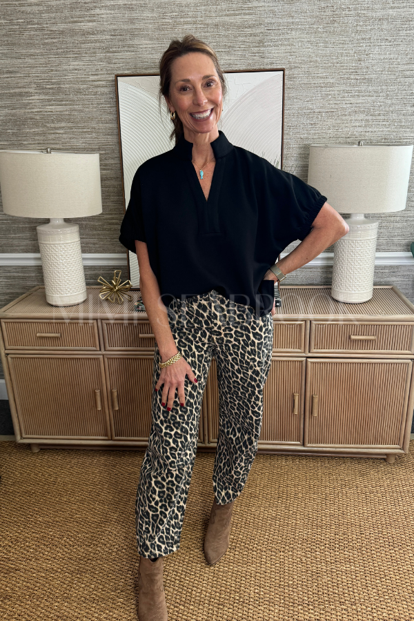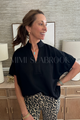 The Boone top in black blends comfort with a flirty twist. Its split V-neck with a collar band adds a touch of charm, while the elasticated sleeve openings keep things fun and flexible. Lightweight and non-sheer, this knit top features a back yoke with a playful pleat detail that moves with you. Crafted from a soft mix of rayon, polyester, and a bit of spandex, it’s perfect for easygoing days with a splash of style. Fabric Content 55%RAYON 40%POLYESTER 5%SPANDEX