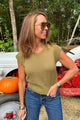 The Brynn top features elegant cap sleeves and a classic round neckline, offering a refined silhouette. Its ribbed detailing at the hem and sleeves ensures a structured fit and subtle texture, making it a versatile piece for both casual and polished looks.