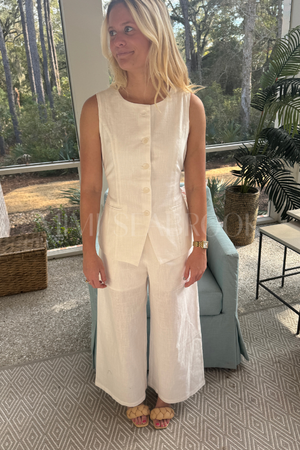 Effortlessly chic and ready for anything, the Currin pants deliver that coveted relaxed vibe without sacrificing style. Cut in a breezy white fabric with a generous loose fit, they're your new go-to for everything from casual coffee runs to laid-back weekend adventures. Pair them with a fitted top to balance the silhouette, or lean into the comfort with an oversized tee.