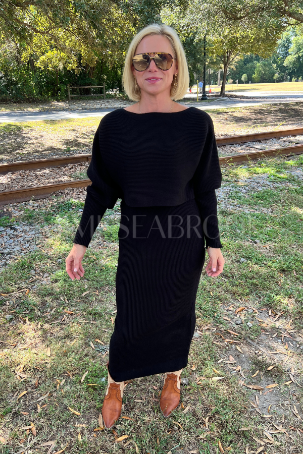This Hollett skirt set features a long sleeve crop sweater knit top paired with a matching bodycon midi skirt. Crafted for a sleek, coordinated look, the knit fabric offers comfortable stretch and warmth, making it ideal for transitional seasons. The fitted silhouette enhances your shape while maintaining a polished, sophisticated style suitable for both casual and dressier occasions.