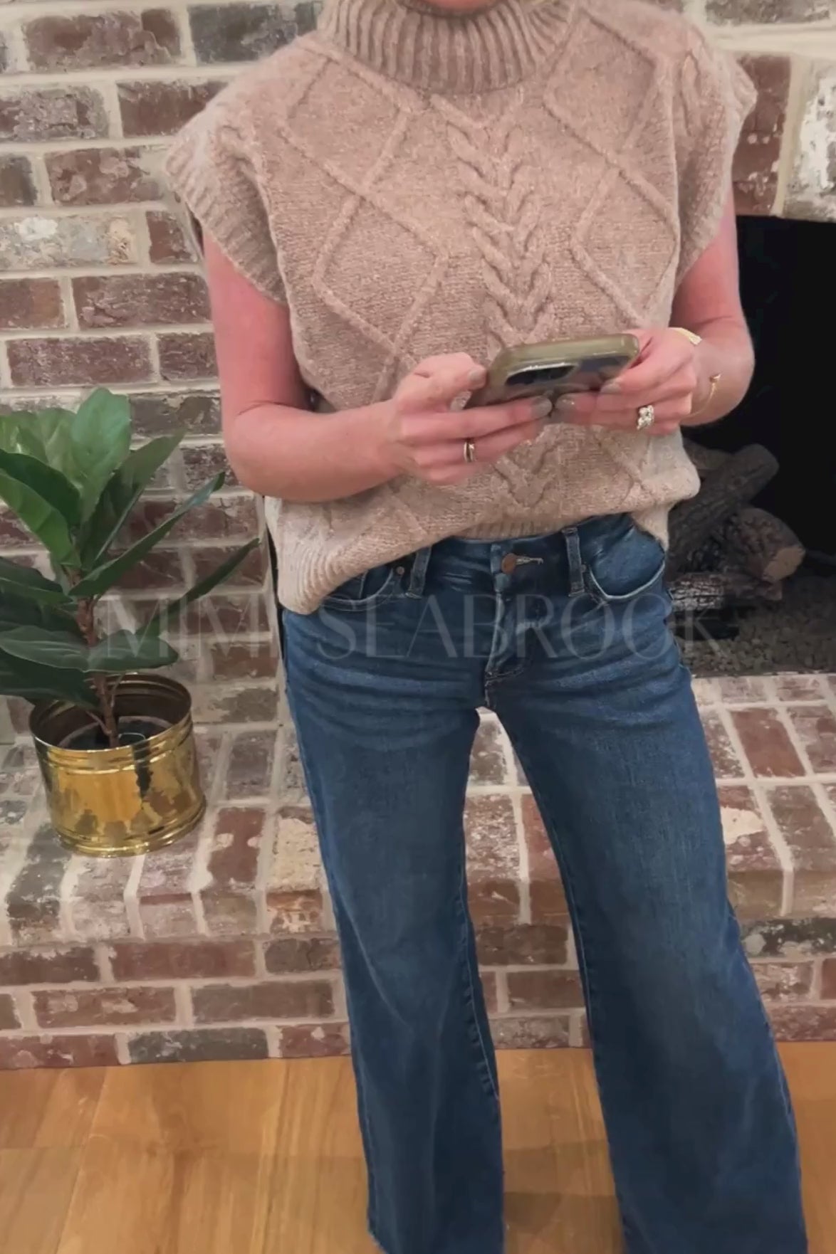 This oatmeal Irwin Sweater is a cozy twist on classic style with its playful cable knit design and mock neck. Crafted from a soft, medium-weight blend of acrylic, polyester, and spandex, it offers just the right amount of stretch and warmth without being bulky. The solid cap sleeves add a fun touch, making this knit top perfect for layering or wearing on its own. Pair it with your favorite pants for an effortlessly chic look that’s as comfy as it is stylish.