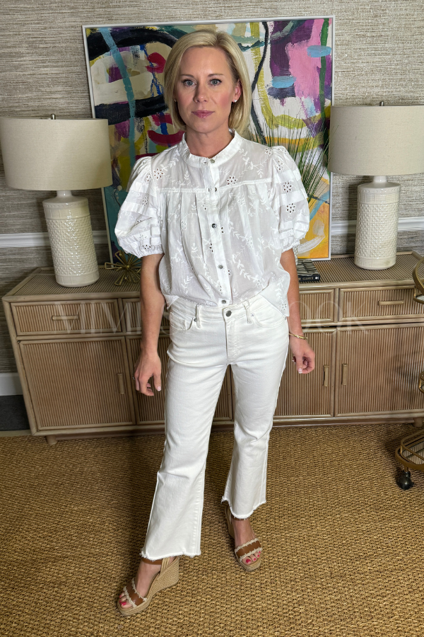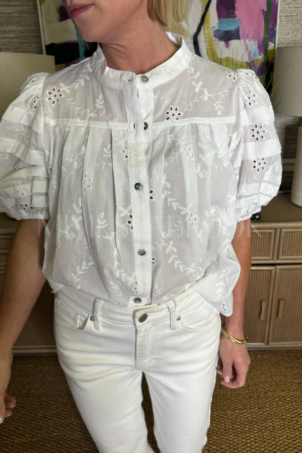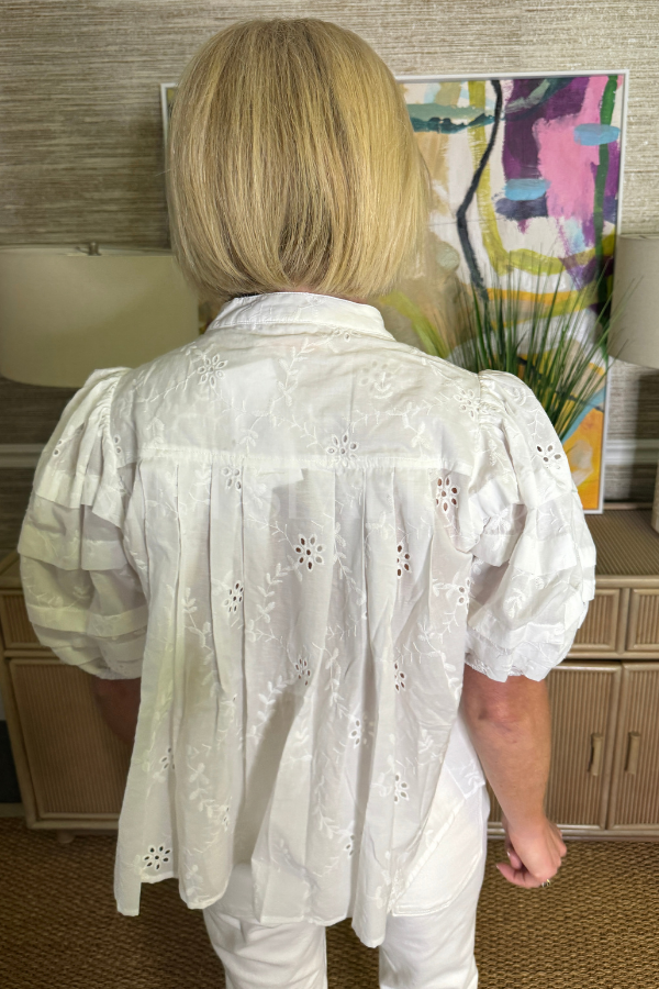 The Lindsey top elevates your everyday wardrobe with its refined silhouette and thoughtful design details. Featuring distinctive bubble sleeves that add dimension and visual interest, this piece strikes the perfect balance between polished and effortless. The classic button-down front allows for versatile styling—wear it buttoned for a put-together look or leave it partially undone for a more relaxed aesthetic.