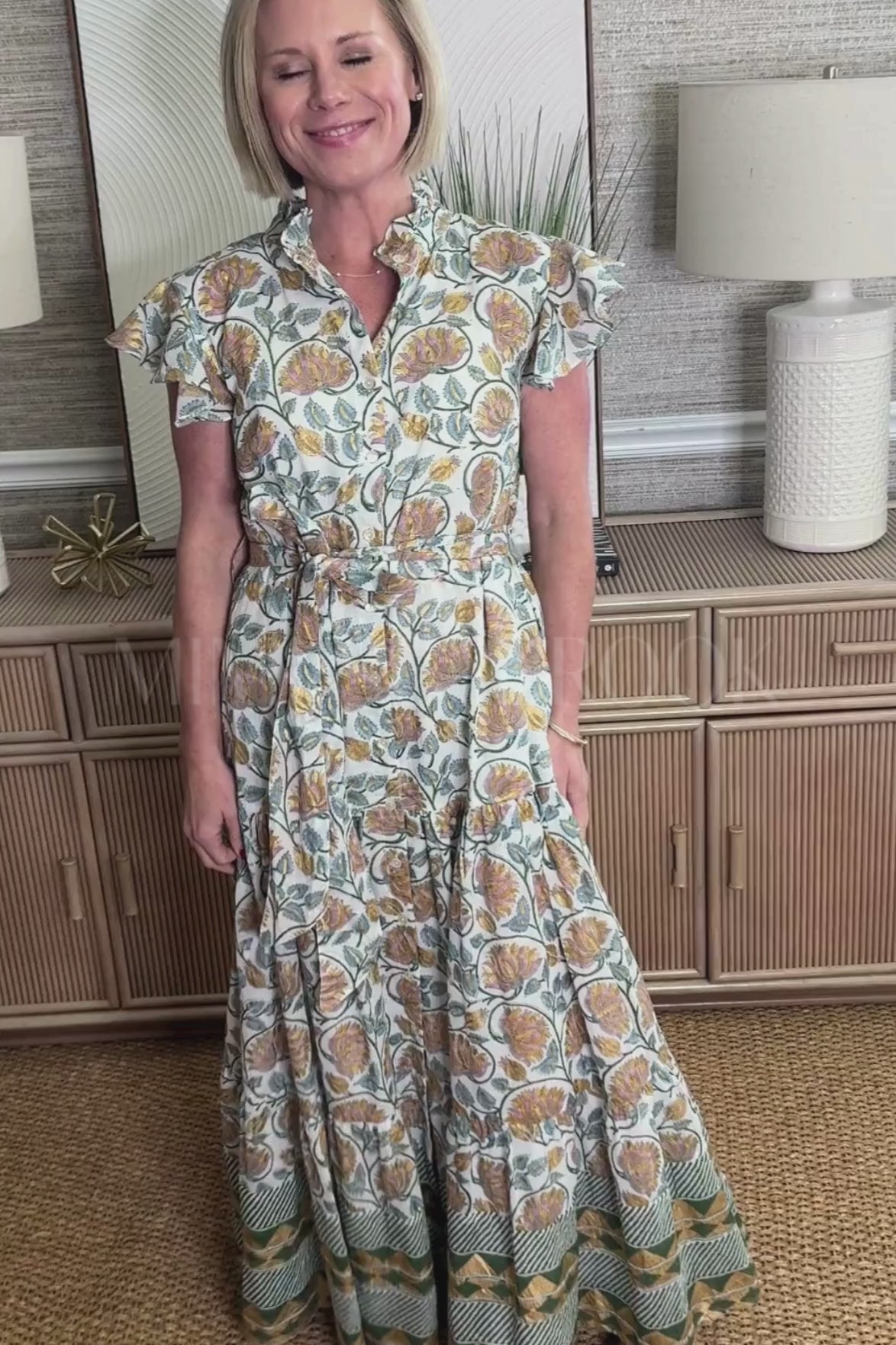Ruffle Collar Button Maxi Dress, Montenegro by Oliphant
