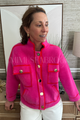 Turn heads in the Vivica jacket—a cozy layer that refuses to blend in. This bold beauty combines vibrant fuchsia and red contrast yarn in a playful color-block design that's impossible to ignore. Slip into the classic collar and button-up front for an effortlessly put-together look, then stash your essentials in the convenient side pockets.
