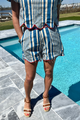 Elevate your warm-weather wardrobe with the Charmain shorts. These striped shorts feature a structured high-rise waist that flatters and defines, paired with a tailored silhouette for a polished look. Practical belt loops and functional side pockets keep essentials within reach, while contrast piping and a charming scalloped hem add distinctive style details.
