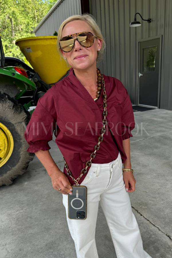 Keep your phone stylishly within reach with the McClain Cell Phone Strap. This playful brown neck strap combines comfort and convenience, making it easy to carry your phone hands-free while adding a fun, trendy touch to your outfit.