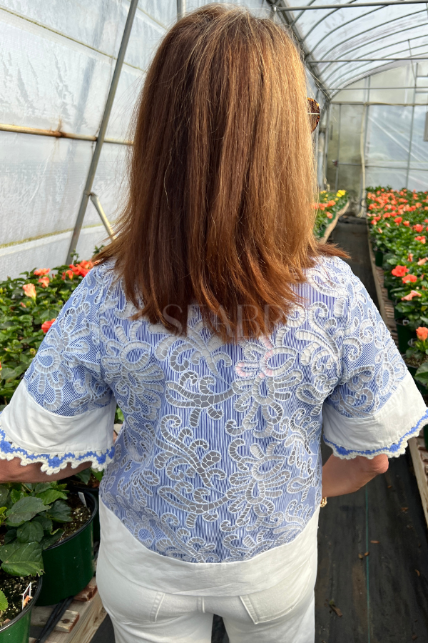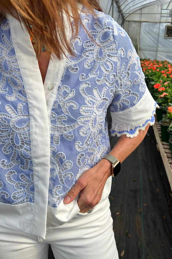 he Amalie top is a versatile short sleeve v-neck featuring delicate lace detailing. The flattering neckline and soft lace accents add feminine charm while maintaining a polished, wearable aesthetic. Perfect for layering or wearing solo, this piece transitions seamlessly from day to night. Crafted for comfort and style, the Amalie top is an essential addition to any closet.