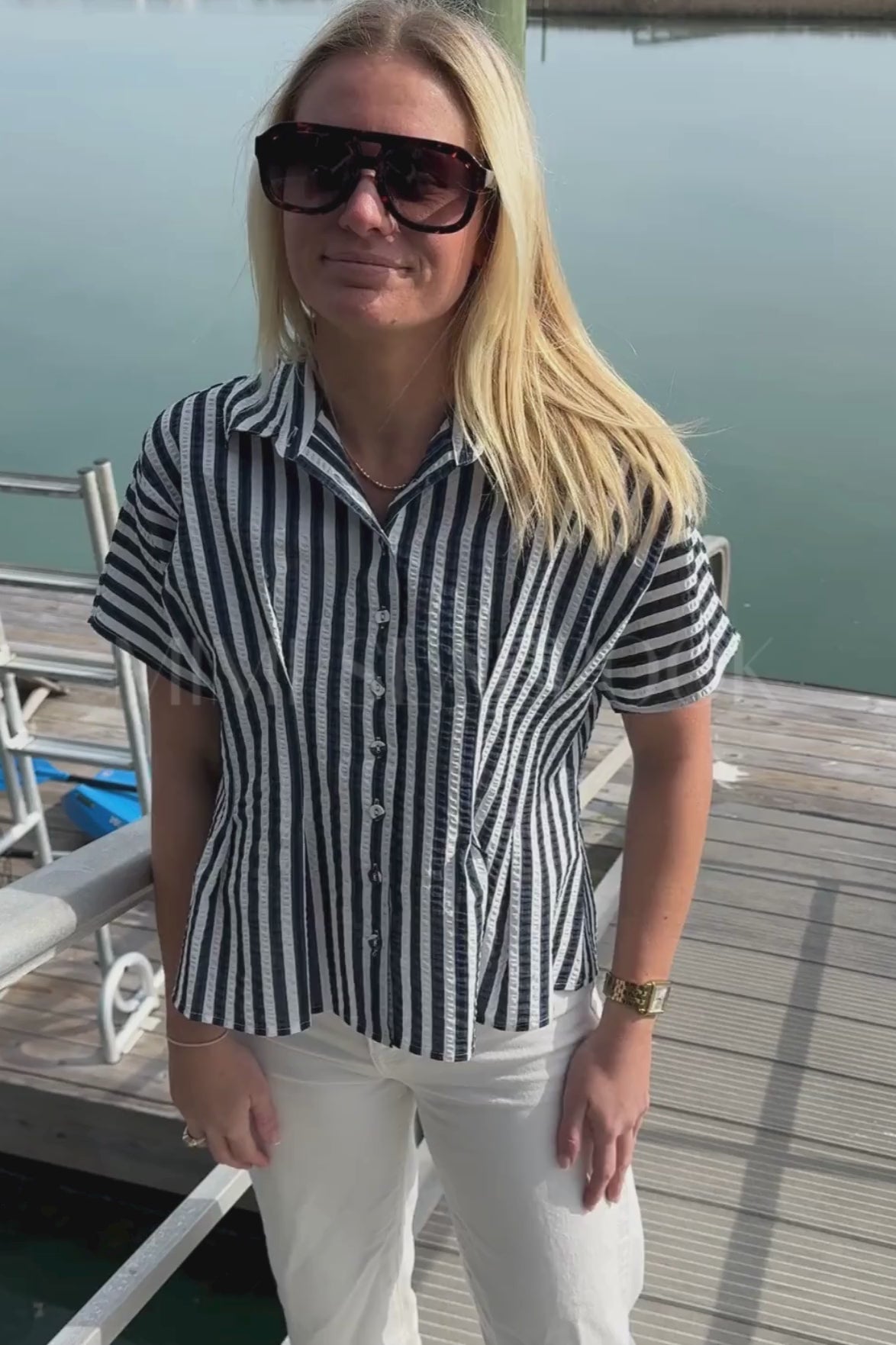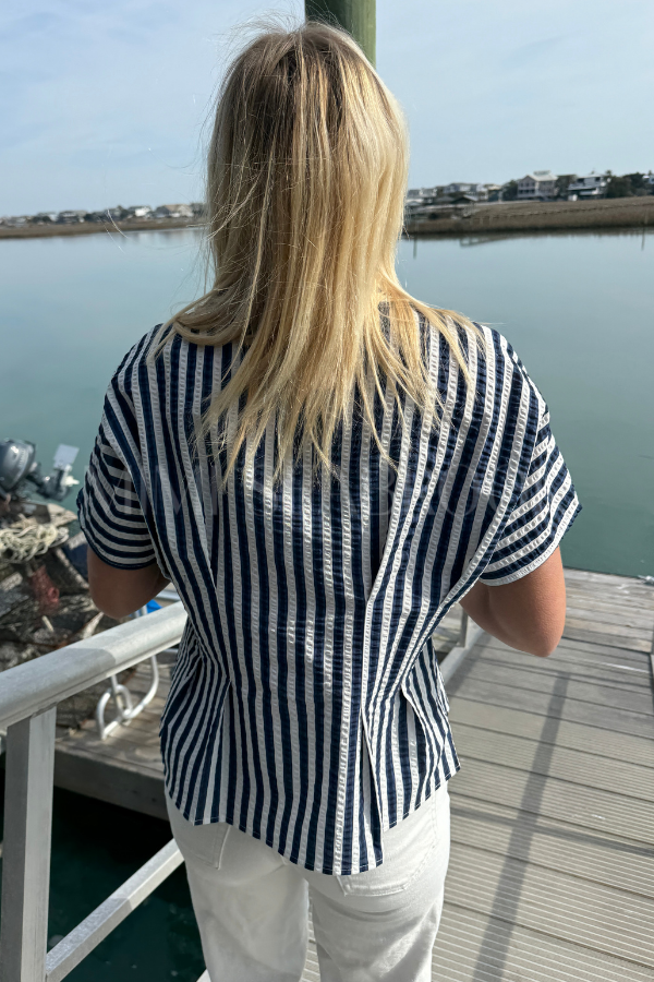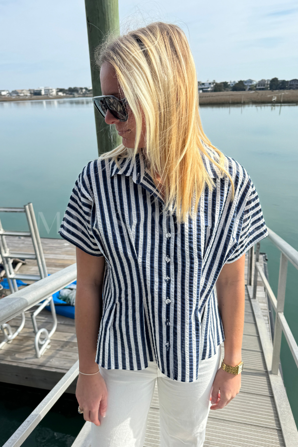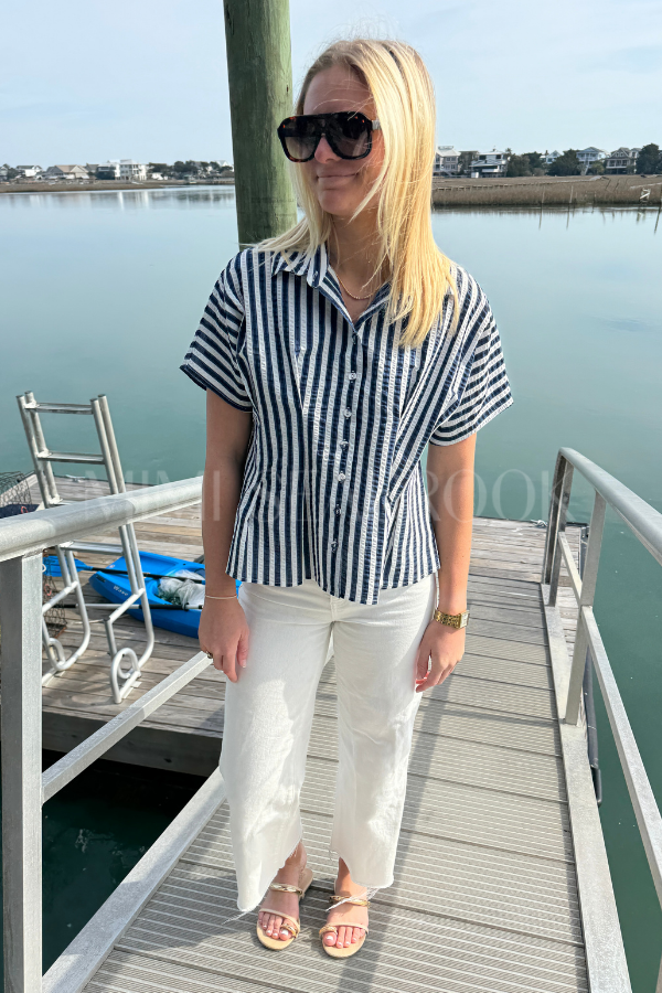 Stripes never go out of style, and this Babson top proves it. Featuring a classic button-up design with short sleeves, it's the perfect piece for effortless layering or solo styling. Throw it on with your favorite jeans for a casual vibe, or dress it up for something a little more polished.