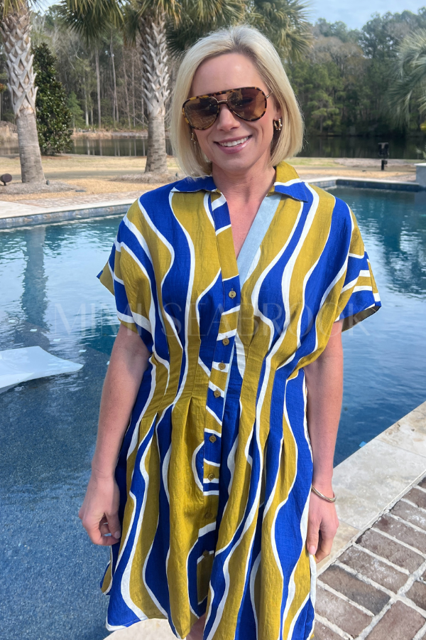 Dive into effortless style with the Bickley dress. This charming short-sleeve number features a wavy striped pattern that adds movement and visual interest to your everyday wardrobe. Perfect for casual outings, weekend adventures, or laid-back gatherings, it's the kind of dress that makes getting dressed fun.