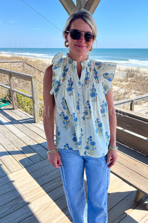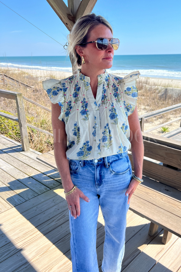 Elevate your wardrobe with this charming button-up top featuring delicate flutter sleeves and a beautiful floral detail. The mustard hue brings warmth and versatility, making it perfect for layering or wearing solo. Crafted for comfort and style, this piece transitions effortlessly from casual days to dressed-up occasions.