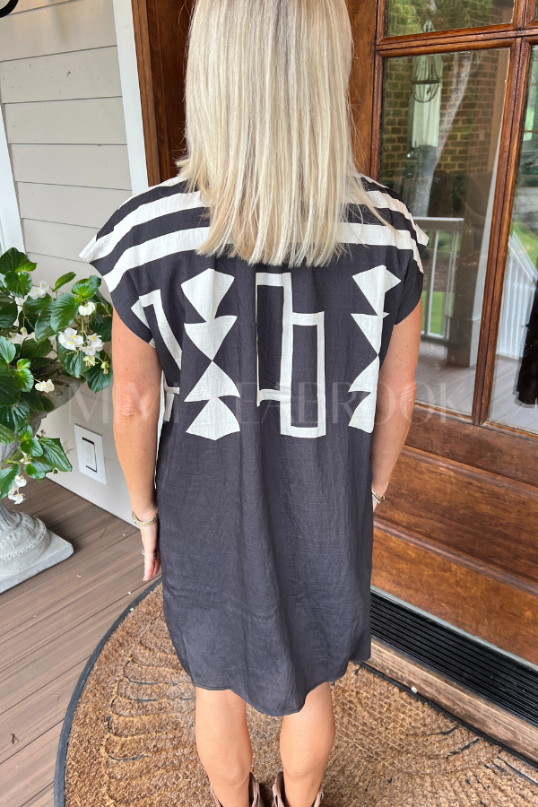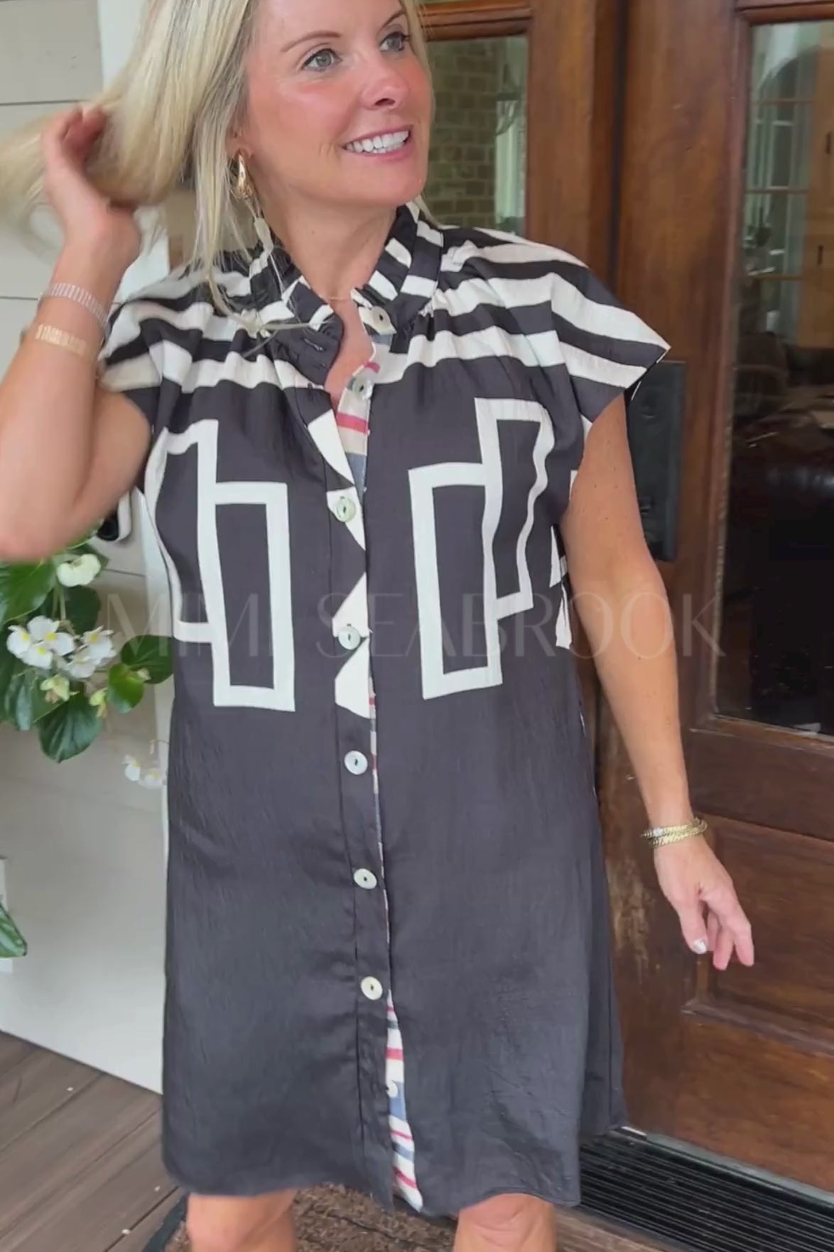 The Grazini dress is your go-to short sleeve print dress for a fun and flirty look. With its vibrant pattern and comfortable fit, it’s perfect for turning heads and keeping your mood light and lively all day long. Ideal for playdates with friends or casual outings, this dress brings a splash of personality wherever you go.