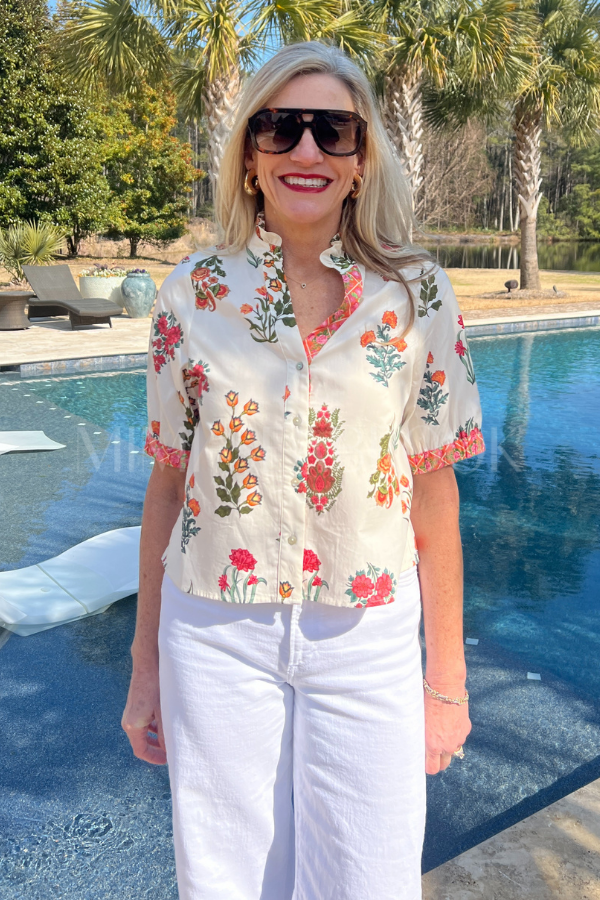 The Lancina top brings effortless style to your everyday wardrobe with its charming floral pattern and breathable short sleeves. Perfect for warm weather dressing, this versatile piece transitions seamlessly from casual outings to relaxed social gatherings.